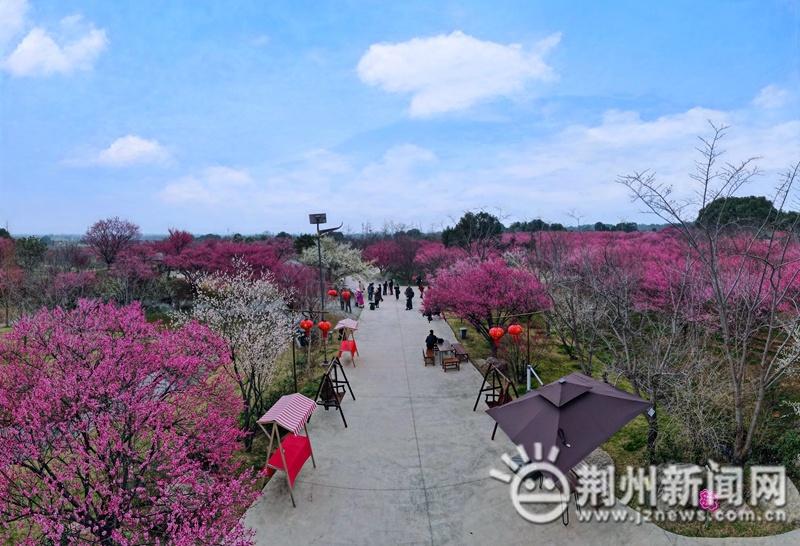 恒荣梅园占地650亩,风景秀丽,四季有花可赏,被誉为荆州的后花园,获评2022年湖北赏花“网红打卡地”。园区相关负责人介绍,园内种植了染井吉野樱465株,樱花盛开时,娇艳欲滴,美不胜收;园内还种植了古梅763株,其他梅花23000余株,另有海棠、紫荆、碧桃、中华木绣球、映山红等各种苗木173个品种,共计59770株。目前天气逐渐转暖,园内梅花已经迎来全盛期,特别适合游客踏青赏景。