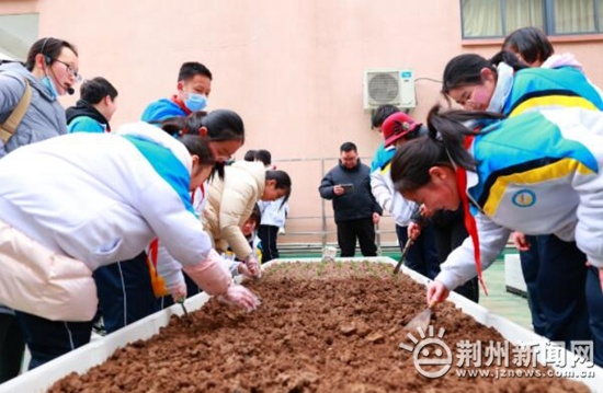 沙市六中生物老师周伊玲:“每周三下午五点到六点,都会有一个班的学生过来上劳动教育课,孩子们会对植物进行日常的维护,像撒种、翻土、施肥、浇水以及采收等,让他们体会到植物生长的过程。”