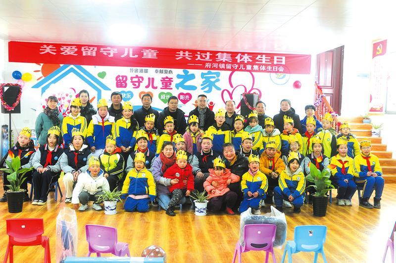 近日,曾都区府河镇中心学校把全镇35位即将过生日的留守儿童聚集在一起,举办了一场隆重、温馨的集体生日会,让孩子们在学校同样感受到家庭的温暖,促进孩子们健康、快乐成长。 (随州日报通讯员 王勇 黄书学摄)