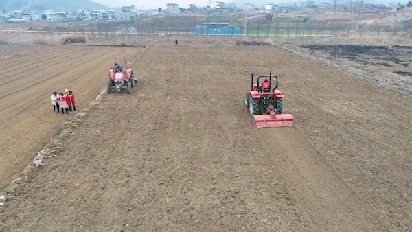 日前,在竹溪县城关镇廖家河村,拖拉机在田间旋耕作业。近年来,竹溪县全面落实农机惠农政策,扎实推进“机械强农”,不断提高农机装备水平,确保春耕备耕有序进行。通讯员冯昊刘艳丽摄