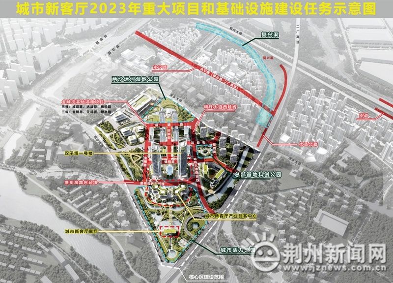 城市新客厅片区核心区面积1020亩(其中金融街190亩),东至二广高速、南至荆沙大道、西至清河路、北至津乡大道,预估投资35.12亿元。该区域是城市新客厅的驱动核心,面向未来发展的“产、城、绿”融合的城市新区,是展示城市文化自信的形象标杆,承载高端消费升级的商业中心,引领产业开放创新的升级引擎,聚集高端人才的CBD3.0小样板。