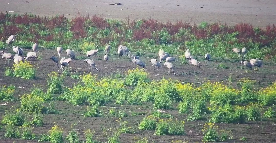 开春以来,气温渐渐回升,洈水湖迎来了数百只灰鹤,为湖畔增添了一抹春意。