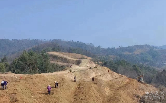 荆楚网(湖北日报网)讯(通讯员曹聪 董剑桥 陈钰)2月27日,驱车行驶在“四好农村路”刘槐线上,路面宽阔平坦,两旁绿树成荫,路的尽头便是蕲春县漕河镇槐树山村。村落的山包上,施工车接续往返,有挖掘机正在进行梯状整地作业,目前这片油茶新基地已经完成300亩的平整工作。