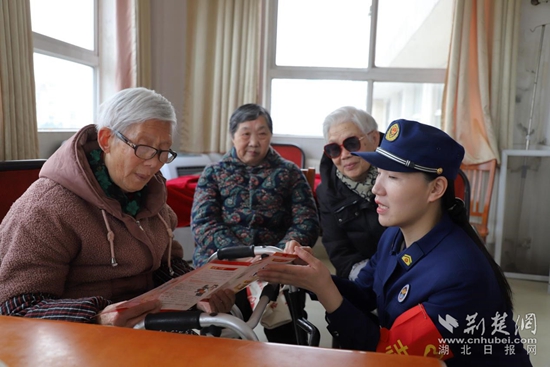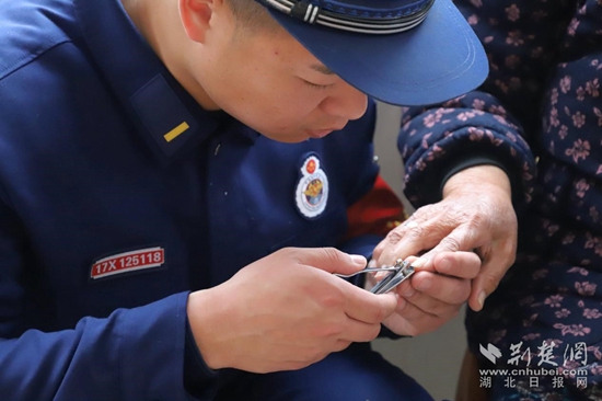 荆楚网(湖北日报网)讯(通讯员 黄消宣)在第60个学雷锋纪念日来临之际,黄石市消防救援支队大冶大队走进华祺老年公寓开展“学雷锋、送温暖、献爱心”活动。为老人修剪指甲、聊天解闷,讲解应急科普知识……“火焰蓝”用实际行动为老人们送去温暖和祝福,养老院内欢声笑语此起彼伏。
