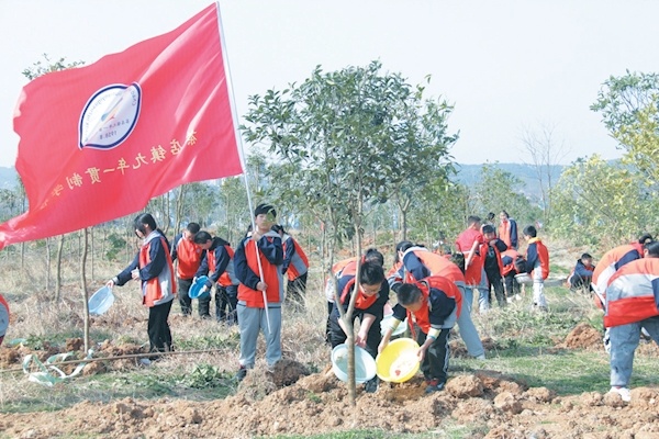 3月3日,郧阳区举行春季义务植树活动,500余名干部群众在汉江沿岸共种植红叶石楠、桂花等树木近200亩。通讯员许慧姚茜茜摄