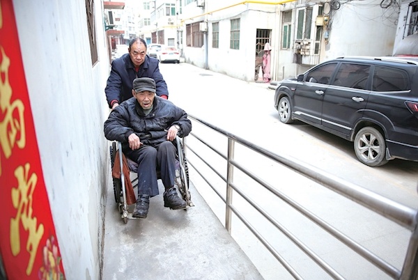 同样受益的还有家住茅箭区东城经济开发区许家棚村的残疾老人王从荣。记者来到他的家,只见门前建有一处台阶,旁边配有一条水泥坡道。坐在轮椅上的王从荣,高兴地对记者说:“以前门口没有水泥坡,我坐着轮椅无法下台阶,每次都是请人抬着出门。现在有了这个水泥坡道,我自己就可以坐着轮椅到小区里转一转了。”