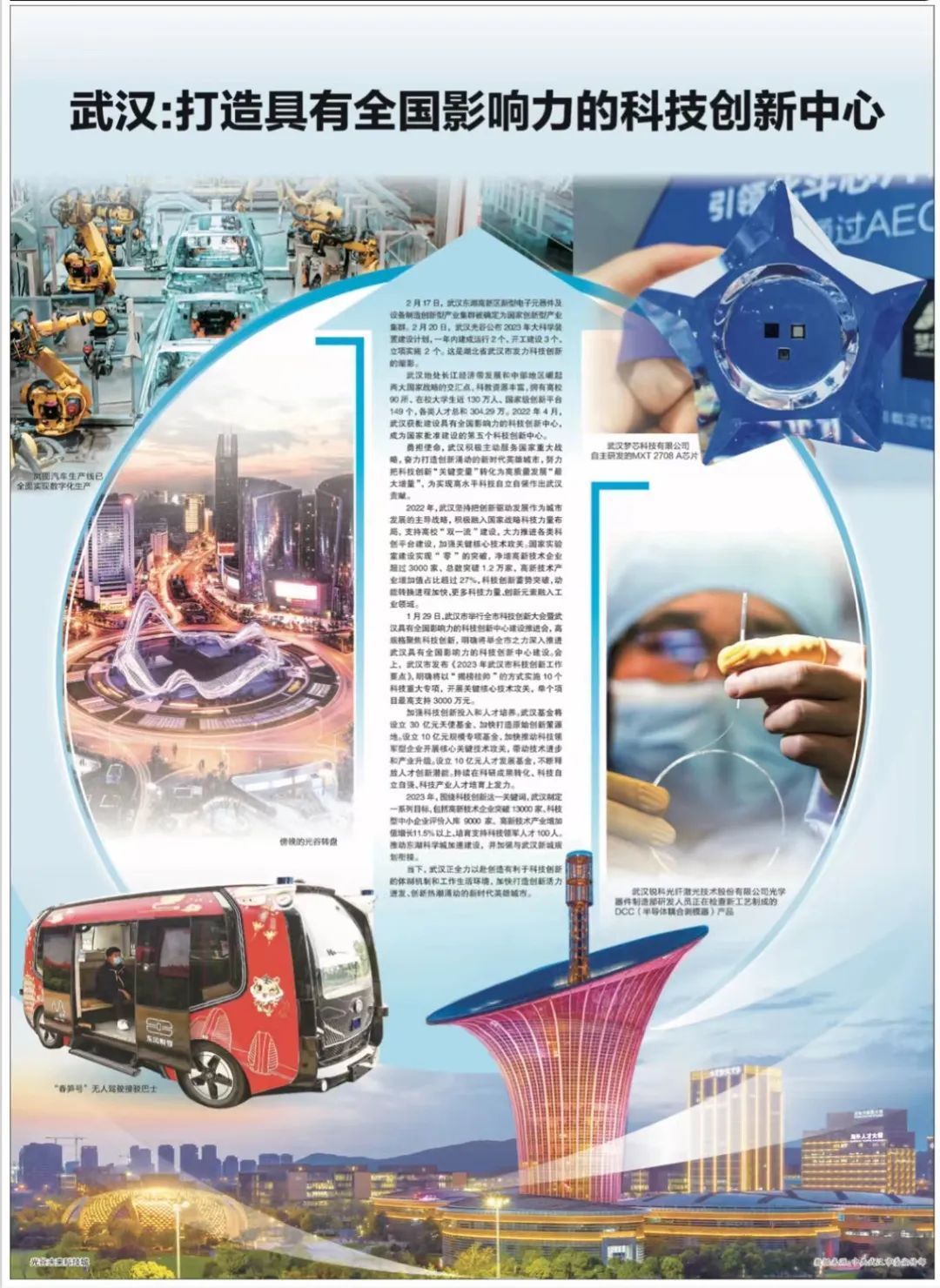 2月17日,武汉东湖高新区新型电子元器件及设备制造创新型产业集群被确定为国家创新型产业集群。2月20日,武汉光谷公布2023年大科学装置建设计划,一年内建成运行2个、开工建设3个、立项实施2个。这是湖北省武汉市发力科技创新的缩影。