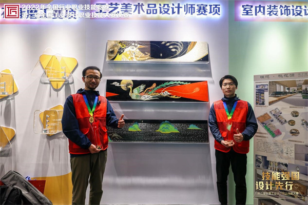 我市选送的两名选手马广波、范建军,均为湖北省民间工艺技师学院教师,在代表湖北省参赛中,经过激烈的角逐,荣获工艺美术品设计师赛项(漆器设计与制作)职工组一等奖,实现我省在该赛项金牌零突破!同时,湖北省民间工艺技师学院获得第二届全国工业设计职业技能大赛突出贡献单位殊荣。