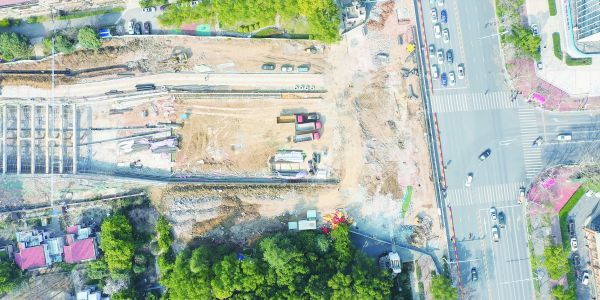 近日,罗汉山隧道工程项目东出口段(象山大道与隧道出口段平交路口)正在进行下穿四干渠改渠施工。据悉,罗汉山隧道工程项目已进入收尾阶段,东出口段是项目主要施工节点,连日来,施工方中建一局组织人力物力,投入设备抓紧施工,预计5月份完成该段的整体施工。(记者张彩云摄)