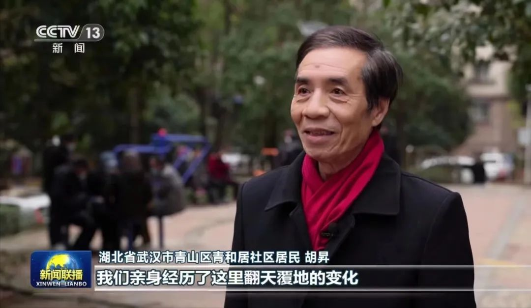 2月25日晚,央视《新闻联播》播出系列报道《总书记的人民情怀》第一集《万水千山总关情》,青山区青和居社区棚改居民的幸福生活登上节目画面。节目中,青山区居民、工人村街道青和居社区棚改户胡昇面对镜头激动地说:“我们周边建了7个公园,老年人生活在这里是很舒适的。我们信心满满,我们的生活会更加美好!”