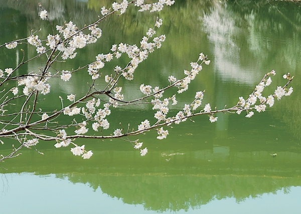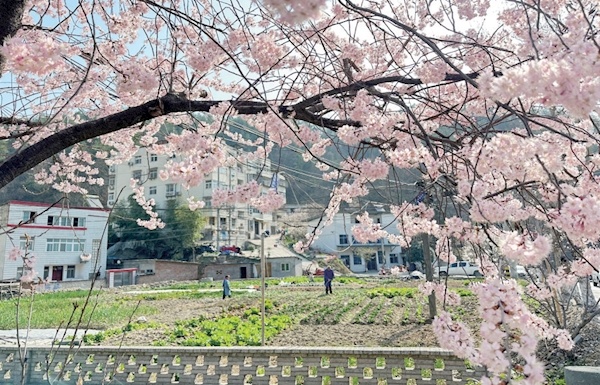 “花枝临水复临堤,闲照江流亦照泥。”汉江路街道柳家河村,如雪似霞的樱桃花与一河碧水相映成画。