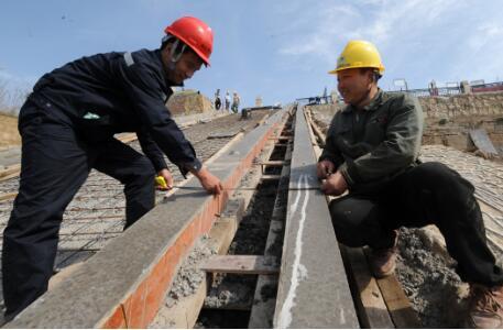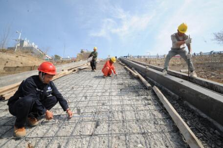 3月6日,荆州长江航道工程队的工人正在沙市洋码头岸边新建一座码头台阶,施工现场一派繁忙。