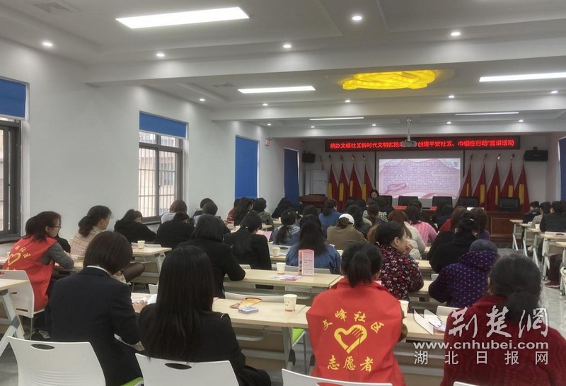 荆楚网(湖北日报网)讯(通讯员 李蓉)余三阳春三月,人面桃花相映红!“三八”国际妇女节即将来临,为增强广大妇女群众的法律和维权意识,引导女性同胞学法懂法用法,3月7日文峰社区居委会联合市妇联、市法院共同开展“三八”妇女节妇女权益保障宣讲活动,绣林街道办事处组织委员聂鑫鑫主持会议。