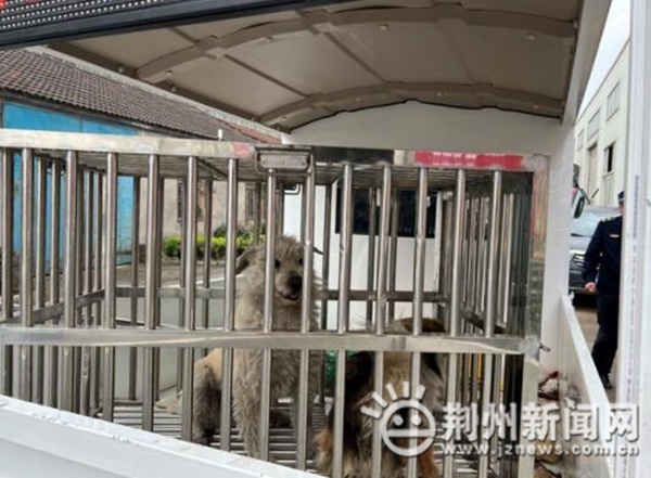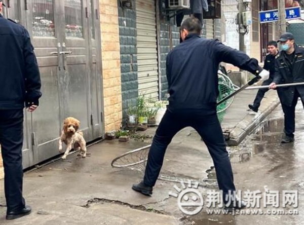 荆州区城管局直属中队工作人员姜鹏:“我们一天一个片区,分东城、西城、城南、郢城四个方位,每个区域一天,对该区域内的流浪狗进行抓捕,已经开展了三个星期了。”