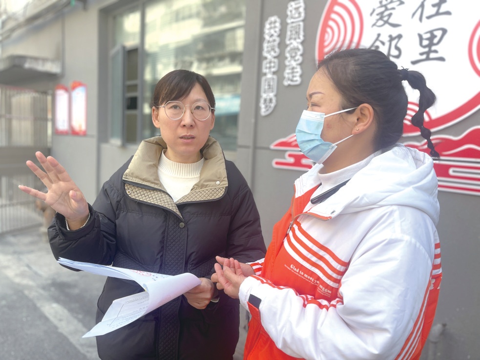 勾丽敏(左)认真了解社区情况,方便及时处理问题。