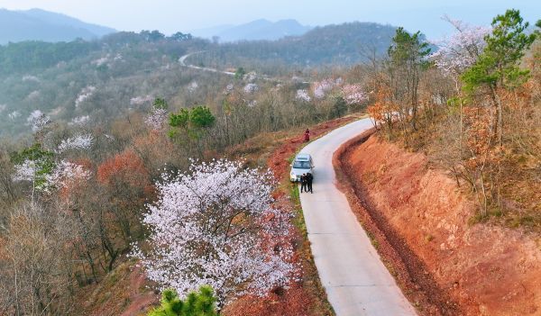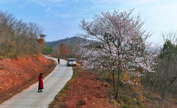 连日来,荆门市东宝区栗溪镇境内数千亩山樱桃花进入最佳观赏期,星星点点的山花与道路、房屋、农田、蓝天白云交相辉映,构成了一幅幅美丽的图画。3月8日,由东宝区文旅局、栗溪镇、马河镇联合主办,荆门市自然资源和规划局东宝分局、东宝区商务局、东宝区水利和湖泊局协办的钱河流域首届湿地文旅节在栗溪镇桑垭村皮湾拉开帷幕,文艺汇演、徒步赏樱、摄影大赛、农产品展销等活动引来众多游客。记者 朱俊波 通讯员 章春梅 刘嫣 摄