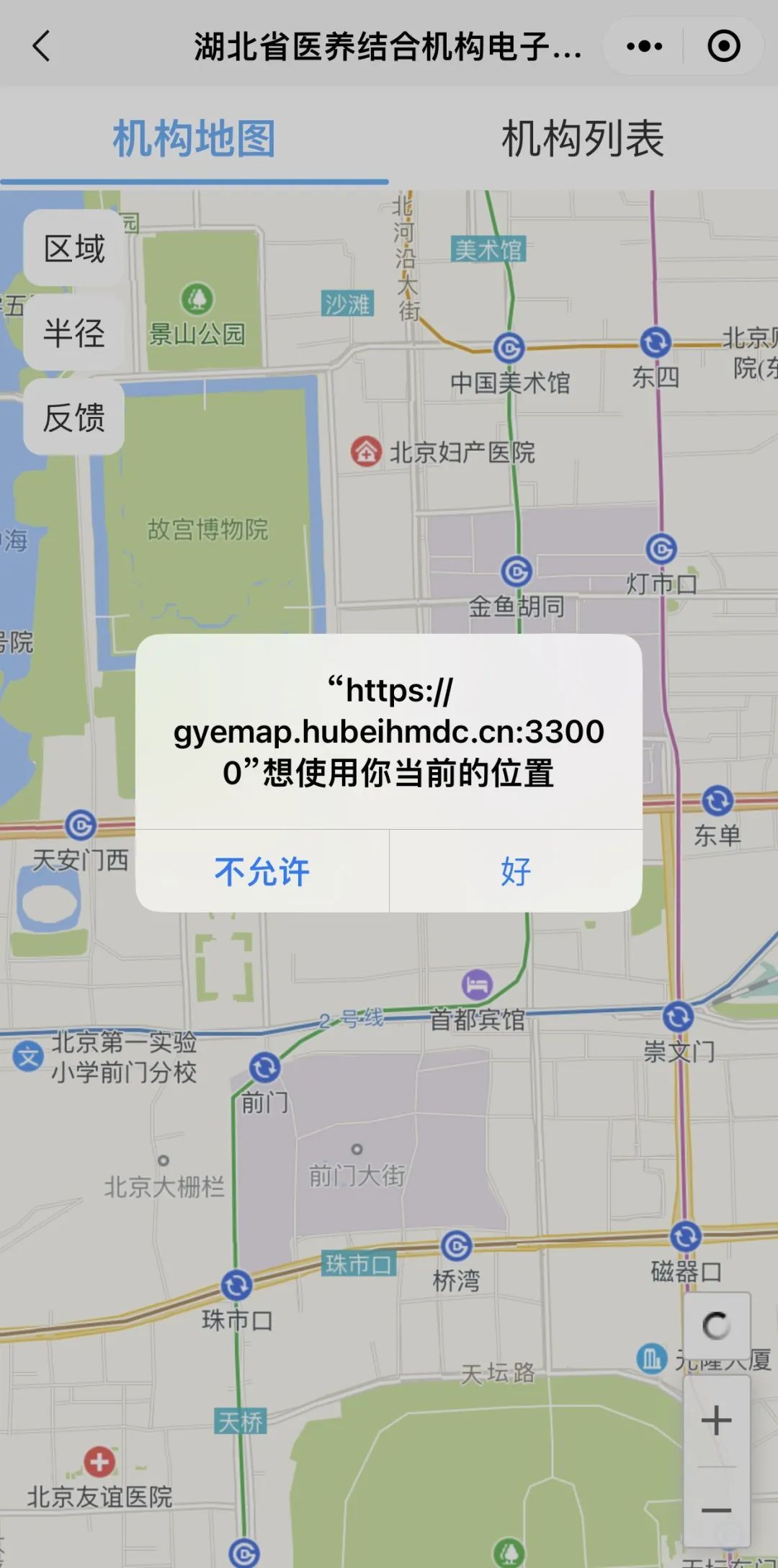 首次使用“健康湖北”时,“健康湖北”会申请获取你的位置信息,点击“允许”,然后点击“登录”,填入“姓名”“身份证号”“手机号”后进行“人脸识别”。