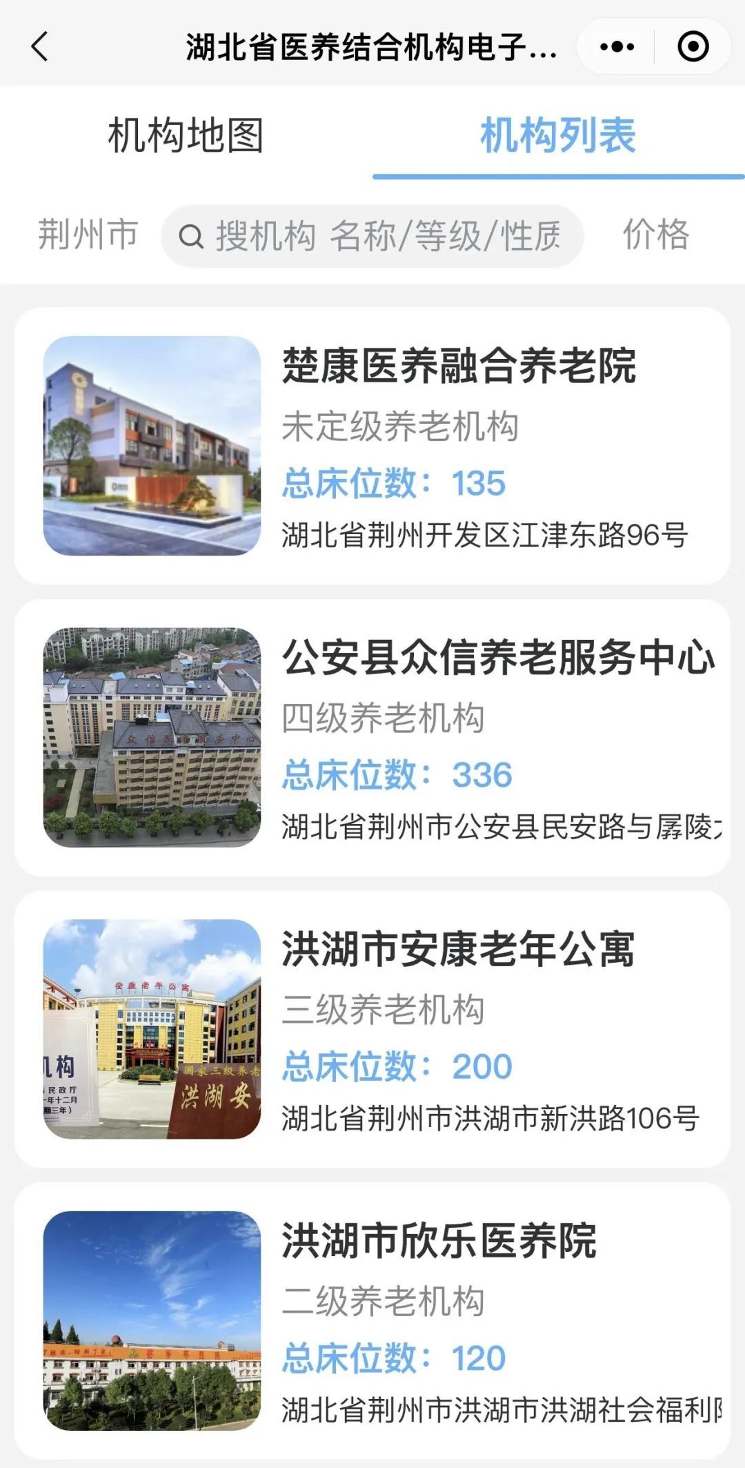 目前,该地图已在健康湖北公众服务平台正式上线,在线医养结合机构达到307个。其中,荆州有15个机构可查。