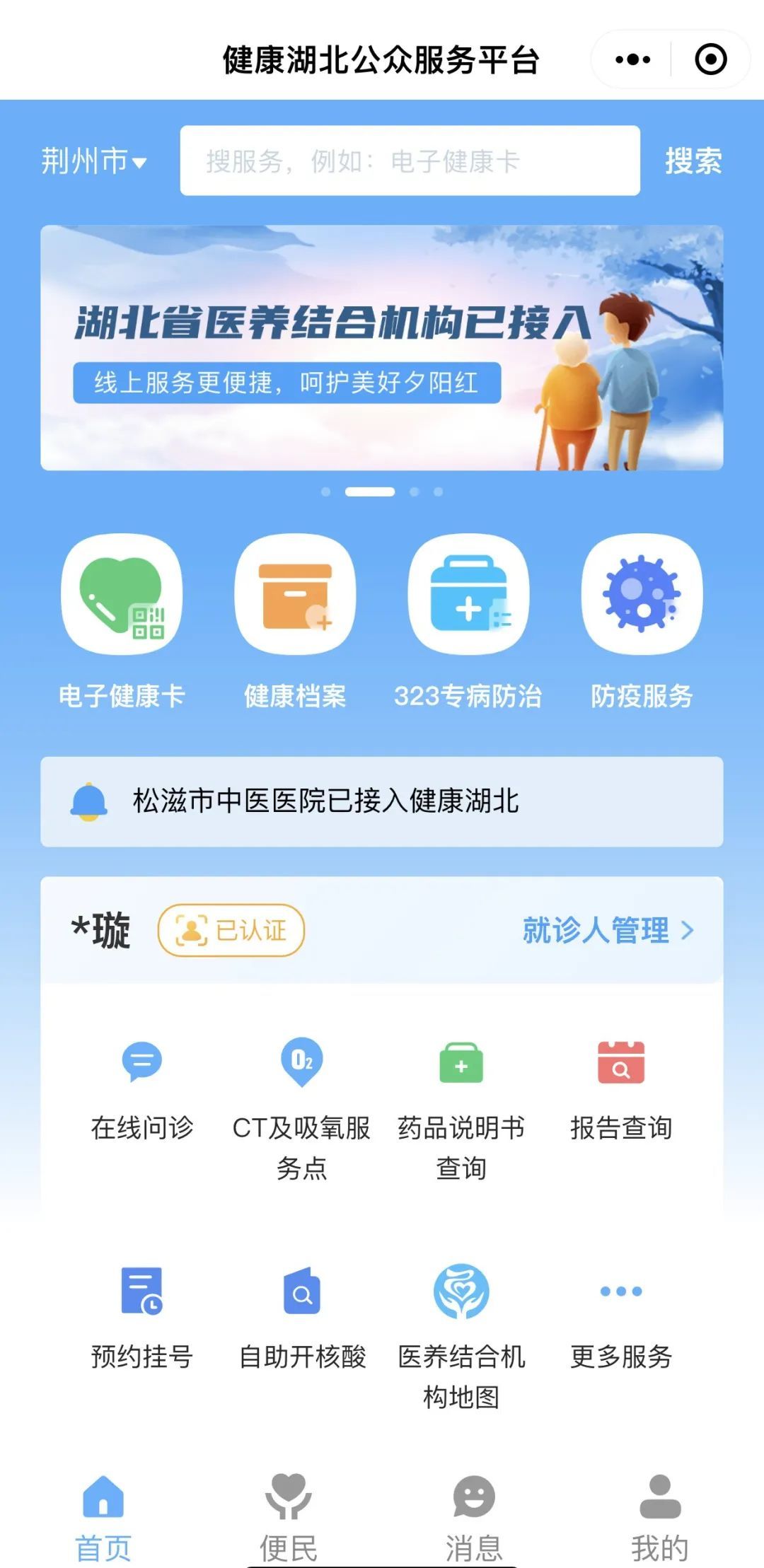 在微信中搜索“健康湖北”进入“健康湖北公众服务平台”