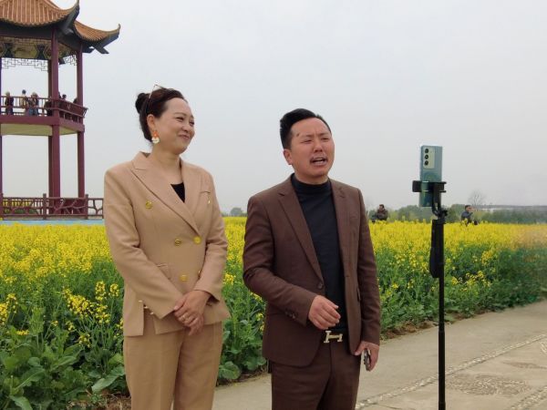“楚韵水乡,花海沙洋”。位于曾集镇的张池农耕文化体验园人头攒动,万亩金色的油菜花海洋,吸引了众多游客来此打卡。媒体团们也徜徉在花海之中,纷纷用自己的手机、相机、摄影机记录下万亩油菜花田的美丽景色。