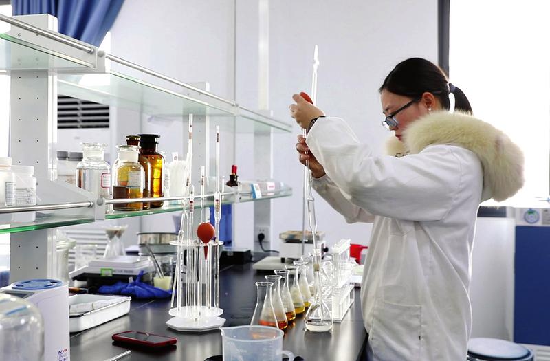 黄鹤楼酒业随州公司检测中心工作人员在分析样品。(随州日报全媒记者 徐斌摄)