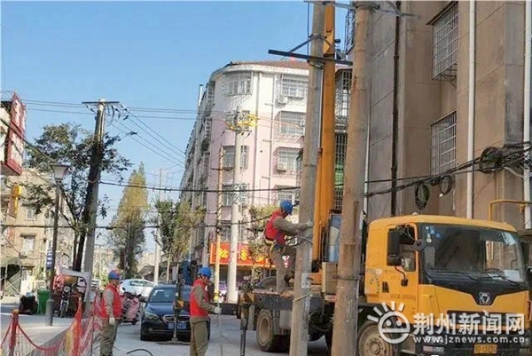 拆除电线杆并没有看起来的那么简单,还要考虑到线路的铺设,居民用电等一系列问题。为此,沙市区住建局和荆州供电公司提前到现场勘察,在土建施工中预埋了通道,多方联动配合,才完成了这项任务。