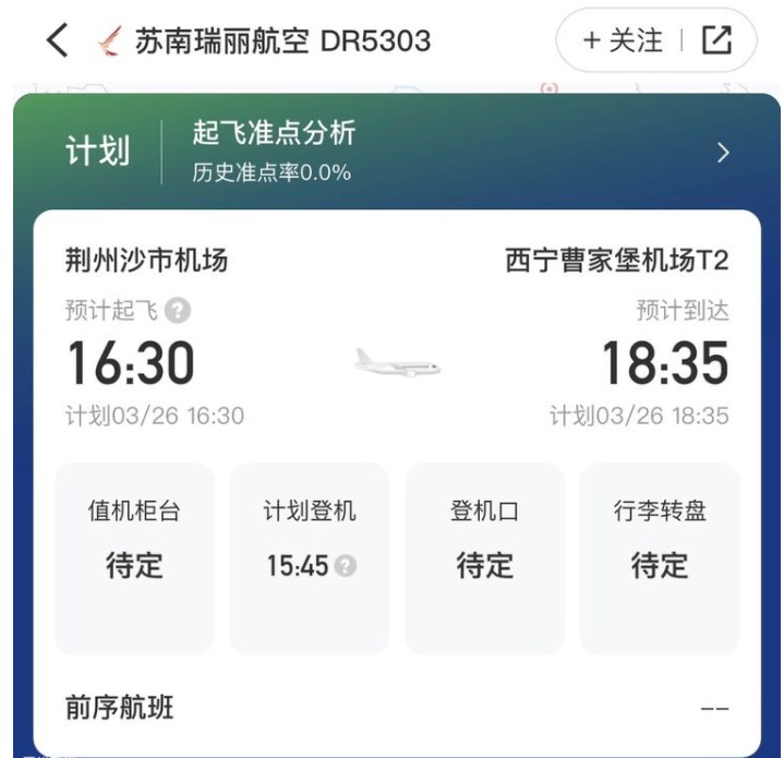 3月26日夏航季开启,荆州沙市机场近日也发布了新航季航线编排计划,一起了解一下。3月26日起,瑞丽航空开通无锡-荆州-西宁往返航班,航班号DR5303/DR5304,每周一三五七执飞。