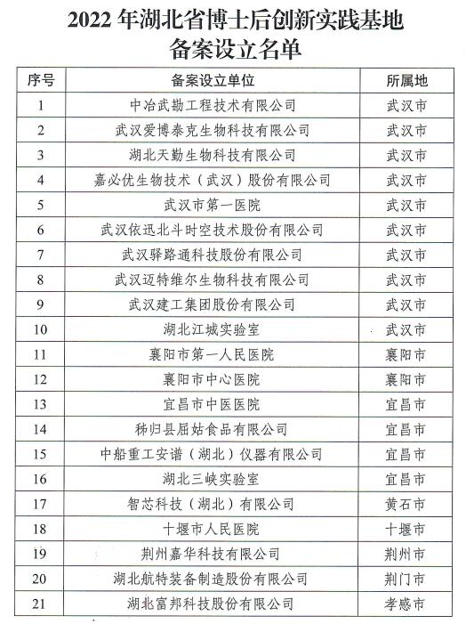 秦楚网-十堰头条讯 记者 吕鑫 特约记者 马婷婷 报道:近日,湖北省人力资源和社会保障厅下发《关于2022年湖北省博士后创新实践基地新设立备案情况的通知》(鄂人社函〔2023〕20号),十堰市人民医院成功获批博士后创新实践基地,具备联合博士后流动站招收培养博士后研究人员资格、开展博士后技术创新实践活动。