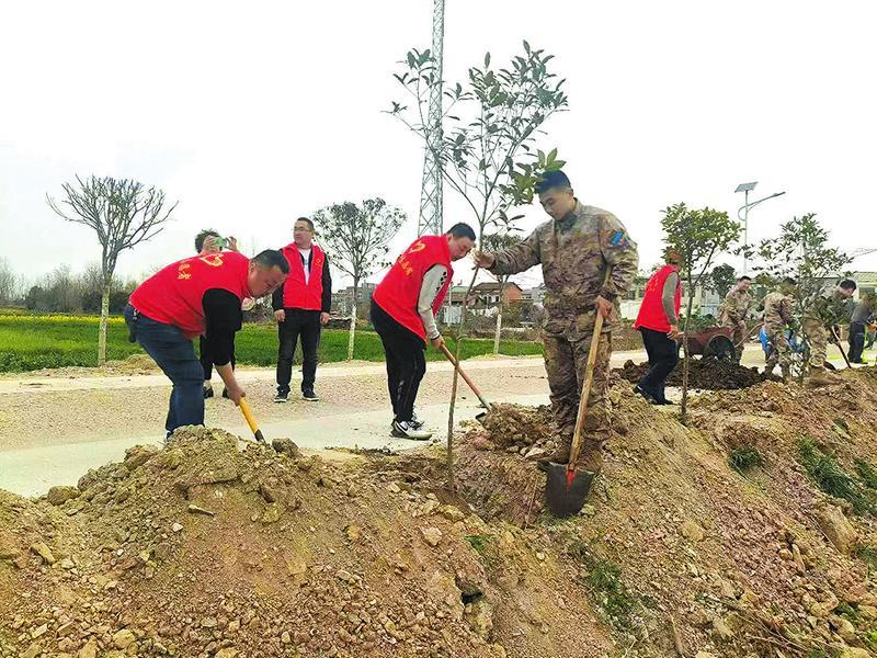 近日,曾都区南郊财政所组织干部职工到茶庵社区开展义务植树活动,在道路两旁共植桂花树苗100余棵。 (随州日报通讯员 李晓寒摄)