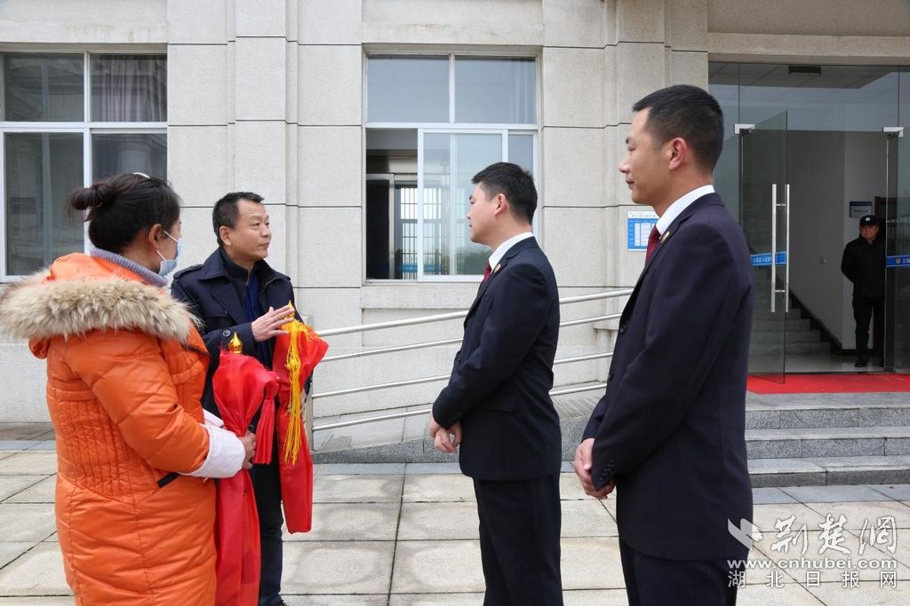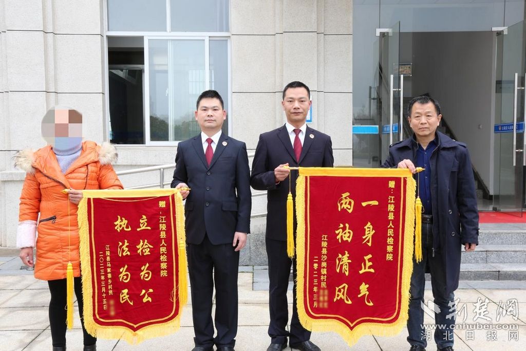 为江陵县人民检察院检察官送上感谢锦旗。通讯员供图