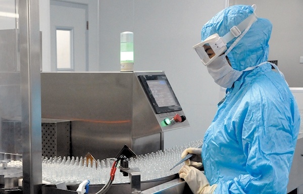3月22日,湖北天圣药业有限公司技术人员在小容量注射剂车间内作业。该公司位于十堰高新区,主要生产销售中成药、化学药制剂、抗生素制剂等。公司计划一季度完成产值6500万元,截至目前已完成产值7000万元,实现了首季“开门红”。记者潘世新摄