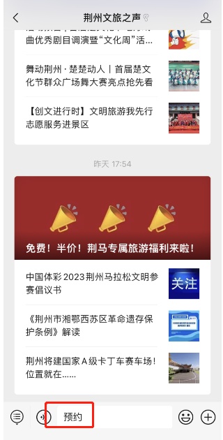 1、关注“荆州文旅之声”微信号;