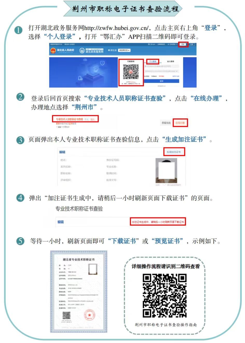 自2022年度起,全市范围内经荆州市职改办批准取得的高、中、初级职称,全面实行职称电子证书。实行职称电子证书后,原则上不再发放纸质证书。已发放的原纸质证书继续有效。