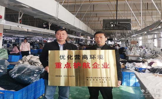 此前,英山县纪委监委“护航”行动专班在对全县重点企业进行走访时,湖北如普帽业有限公司反映该公司门口的“优化营商环境重点护航企业”牌匾是2020年5月悬挂的,因常年风吹日晒,导致字迹斑驳不清。随后,该县纪委监委将这一问题纳入工作台账,立即协调重新制作牌匾,于是便有了开头“换牌”的一幕,这也是该委深化“护航行动”的一个生动体现。