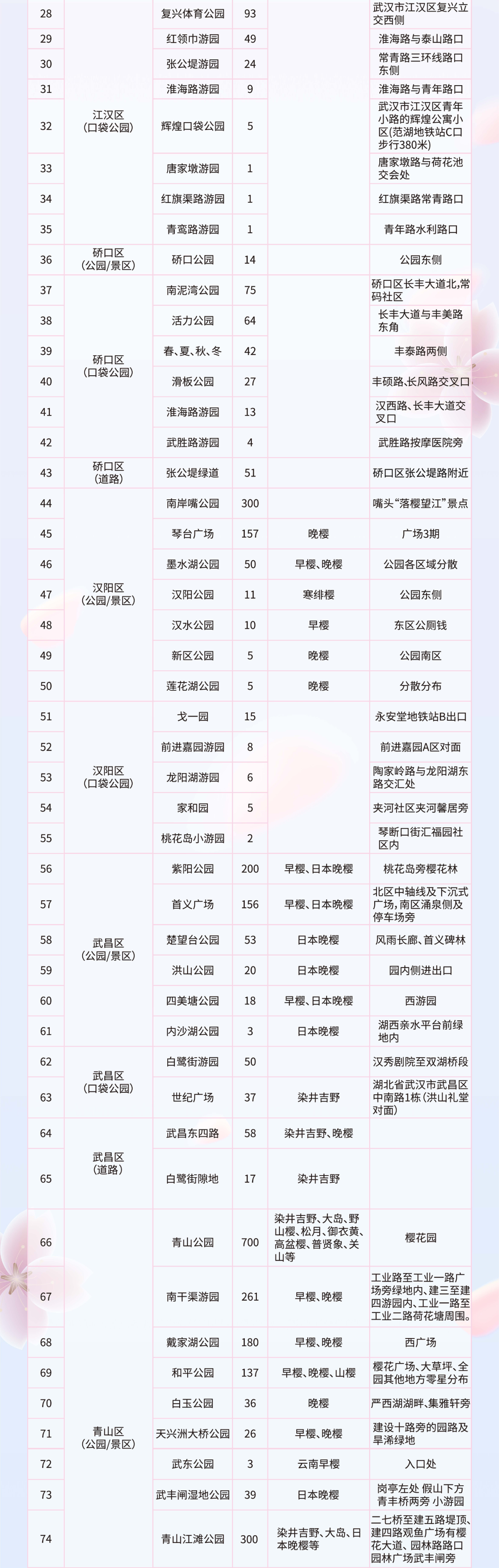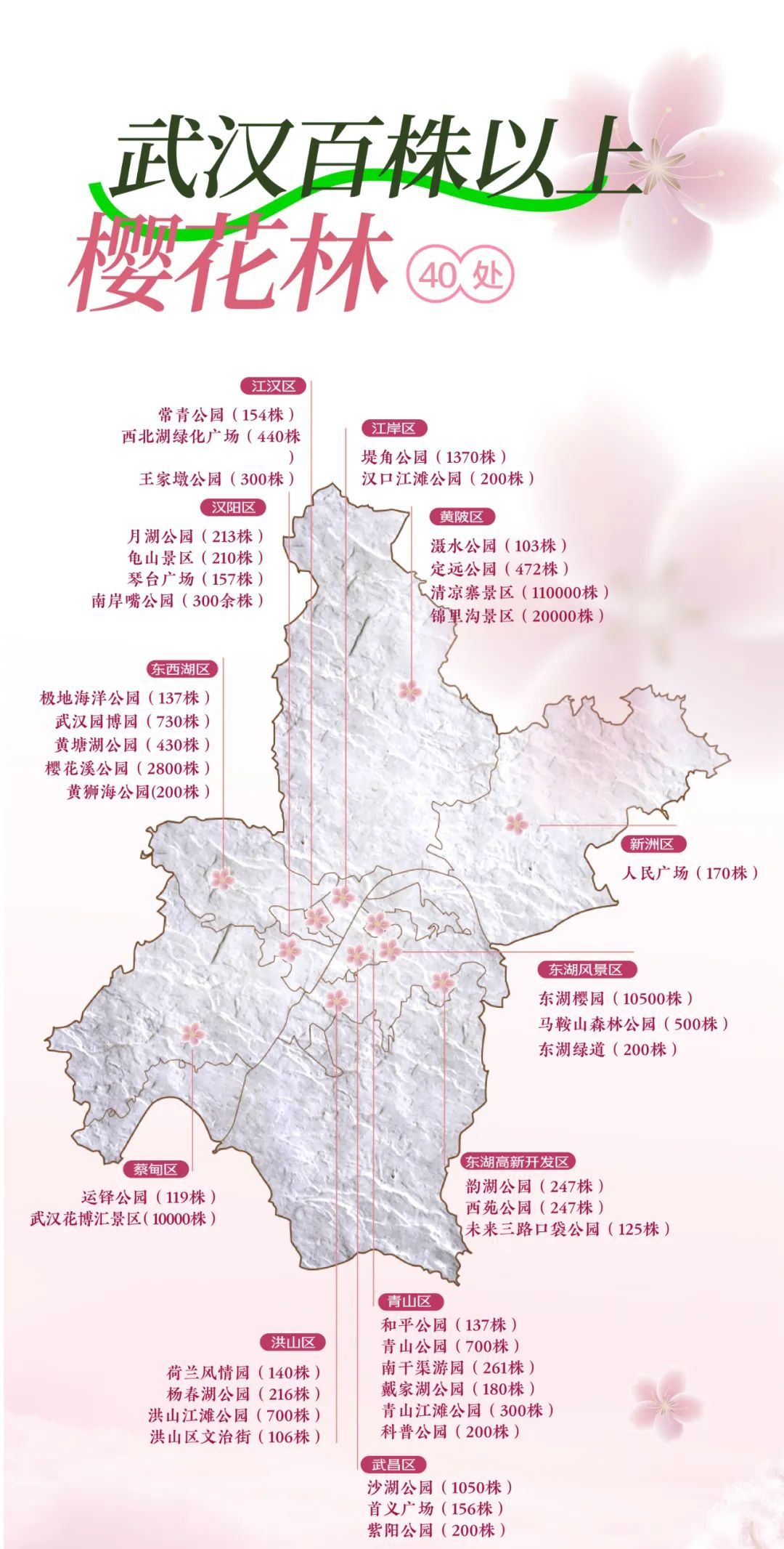其中种植樱花百株以上的赏樱点有40个