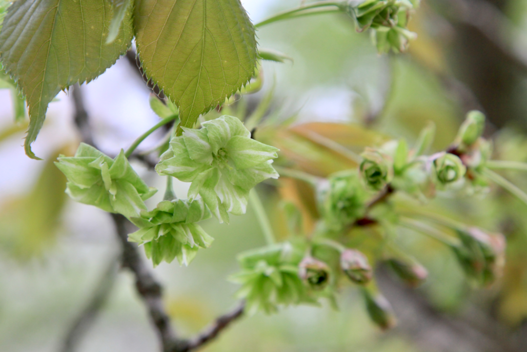珍稀的绿色樱花也开了
