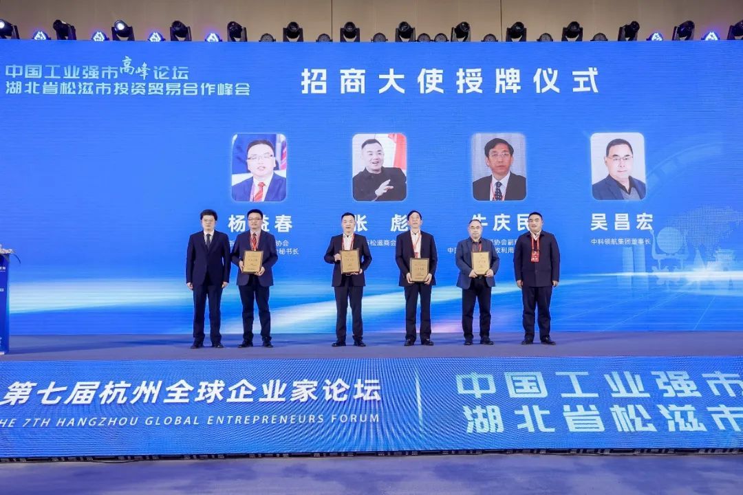 会上,浙江省中小企业协会工业强市专委会秘书长杨益春,杭州松滋商会会长张彪,中国造纸协会副理事长、中国再生资源回收利用协会高级顾问牛庆民,中科领航集团董事长吴昌宏被聘为松滋市招商大使。汪卫与企业家交流会谈表示,将借助浙江省中小企业协会的平台优势,组织中国企业好项目走进松滋,协同宜荆荆成立长江经济带产业园,推进央地合作、企业与地方政府融合,助力工业强市,促进区域经济高质量发展。