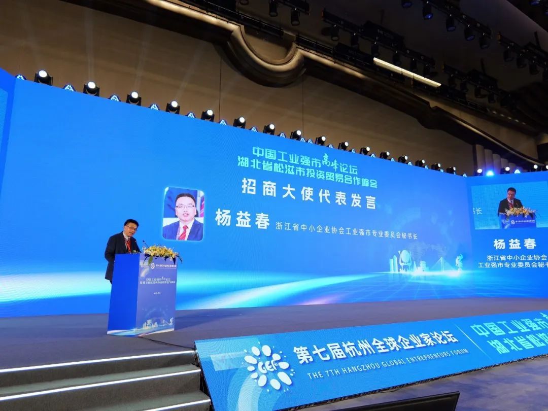 ▲招商大使代表 浙江省中小企业协会工业强市专业委员会秘书长杨益春发言