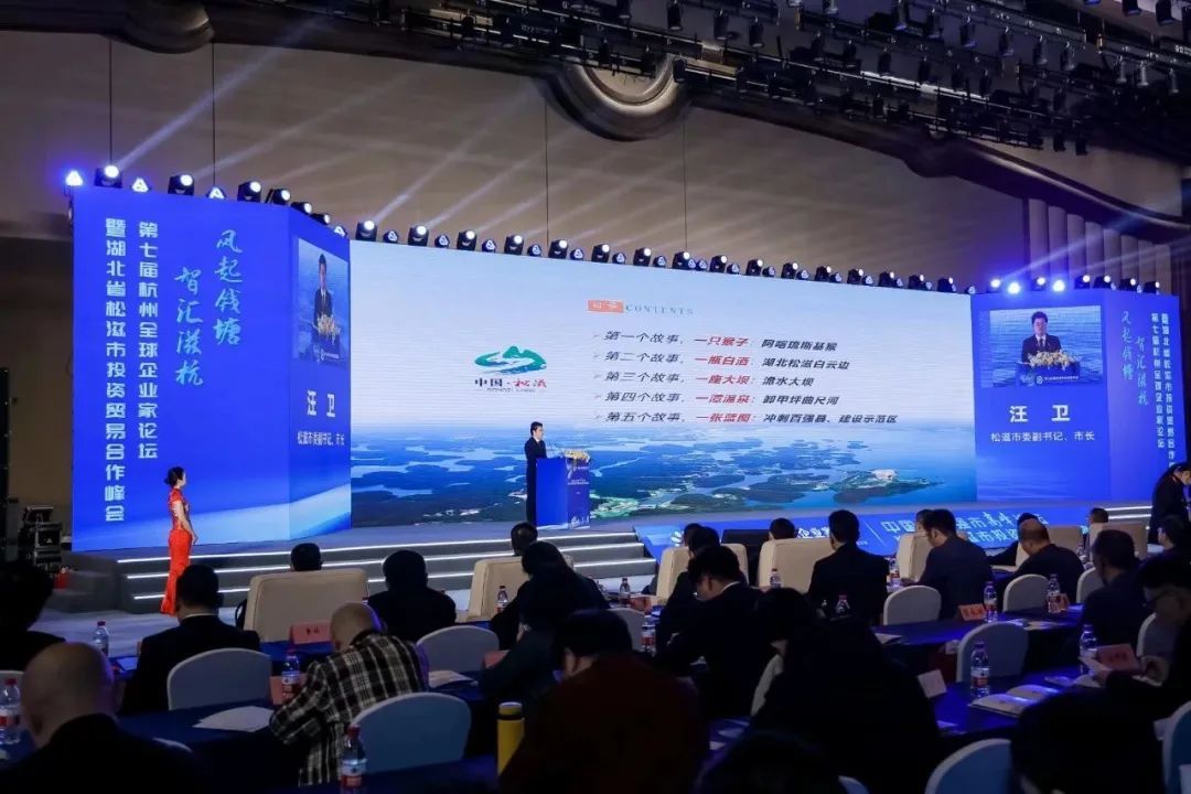 松滋市委副书记、市长汪卫以“五个故事”将松滋推介给世人。第一个故事“一只猴子:阿喀琉斯基猴”,彰显松滋浓厚的文化底蕴,优秀的红色历史,丰富的金色产物,淳厚的清亲乡风。第二个故事“一瓶白酒:湖北松滋白云边”,捧出松滋最闪亮的工业名片,驱动工业体量持续壮大、平台容量持续扩展、创新能量持续释放、外贸增量持续上升的工业强市引擎。第三个故事“一座大坝:洈水大坝”,诠释松滋坚持农业农村优先发展的生动实践,凸显农业结构更加优化、农村环境更加美好、农民生活更加富裕的农业现代化成果。第四个故事“一潭温泉:卸甲坪曲尺河”,引出全域化旅游景点、品质化旅游路线、多样化旅游体验,呈现松滋山水风光之美。第五个故事“一张蓝图:冲刺百强县、建设示范区”,印证松滋战略机遇好、交通区位好、营商环境好,正在高质量发展的赛道上奋力奔跑。