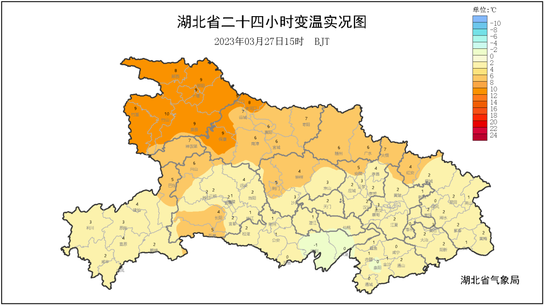 恩施地区阴天有小雨;其他地区多云间晴天。