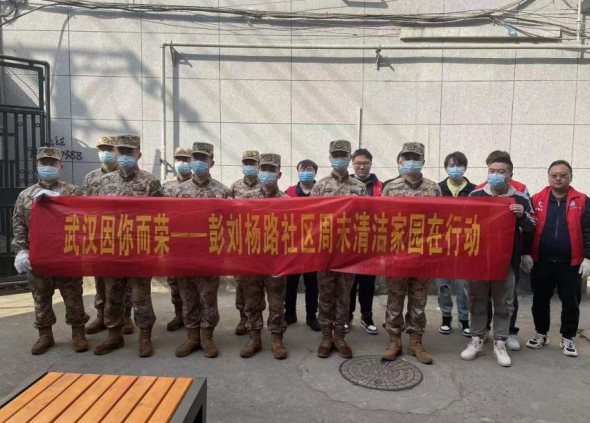 荆楚网(湖北日报网)讯(通讯员潘菲)3月10日,在武汉市彭刘杨路社区某老旧宿舍,一群身着迷彩服的兵哥哥与社区志愿者们正在进行周末清洁家园活动,他们积极工作的样子,引得路过居民连声点赞。