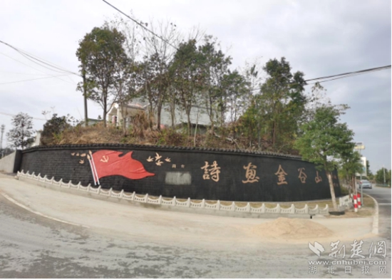 结合金谷山村口浠水县革命烈士陵园建设推进,共同缔造活动开展以来,村级与学校、企业三方共同发力,联合将村级主干道进行提档升级,让破损道路摇身一变为连心路、惠民路、产业路,村民们也自发在门前、农田周围编制竹篱笆进行环境手工改造,打造手工墙绘、小微景观20余处。