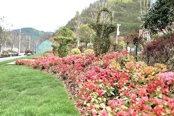 据介绍,十堰大道景观提升示范段项目分为绿化升级和道路改造两部分。其中绿化升级总面积12000平方米,栽种三角梅、月季、茶花、桂花、松红梅等花草灌木14个品种30000余盆。道路改造面积700平方米,增设三段下沉式绿化景观花坛。
