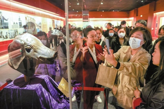 游客参观荆州博物馆。(本报记者张梦瑶摄)