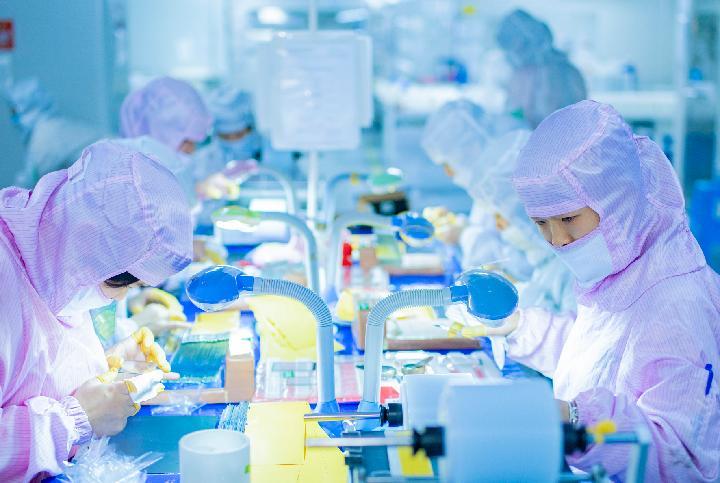 黄石瑞视光电车间内,技术人员正在作业。(石勇 摄)