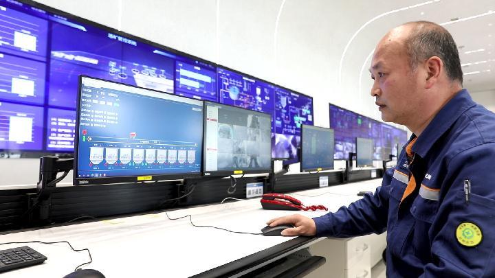 “百年铁矿”开始智能化开采,“百年工厂”也在实现数字化生产。大冶特钢460钢管厂集控室,巨大的弧形屏幕上显示着每个生产环节的实时生产状况、生产数据和设备情况。厂长张红军介绍,利用可视化的数字孪生、人工智能、大数据等技术,工人们在集控室就可以实现对设备端的动态感知和精准控制。