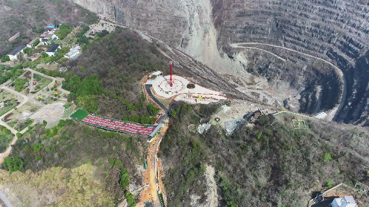 走进位于黄石铁山的国家矿山公园,群山环抱之中,一个巨大的“天坑”豁然眼前。“天坑”上大下小,形如一只硕大的倒葫芦,坑壁有螺旋形的道路盘旋,直至坑底。公园管理处负责人阎红勇介绍,这就是大冶铁矿的采坑,原来是三座连绵起伏的山峰,经过一百多年开采,挖成了“亚洲第一天坑”。矿坑上下落差444米,坑口面积108万平方米,相当于150多个足球场大小。