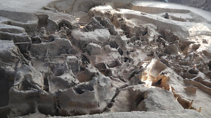 走进400多平方米的展厅,俯身看去,脚下竟是一座密如蛛网的“地下迷宫”。竖井、斜井、盲井以及平巷纵横交错,层层叠压,或以木桩支撑,或以隼框架护。当地文史专家吴宏堂介绍,这是距今2700多年前春秋时期的地下采矿遗址,从3500年前商代中期至西汉时期,这里开采和冶炼铜矿历时一千多年。