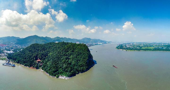 紧邻市区的黄荆山脉延至江边,突起一座峰峦,以悬崖挺立之势直入江心,它就是天下闻名的西塞山。(何戈 摄)