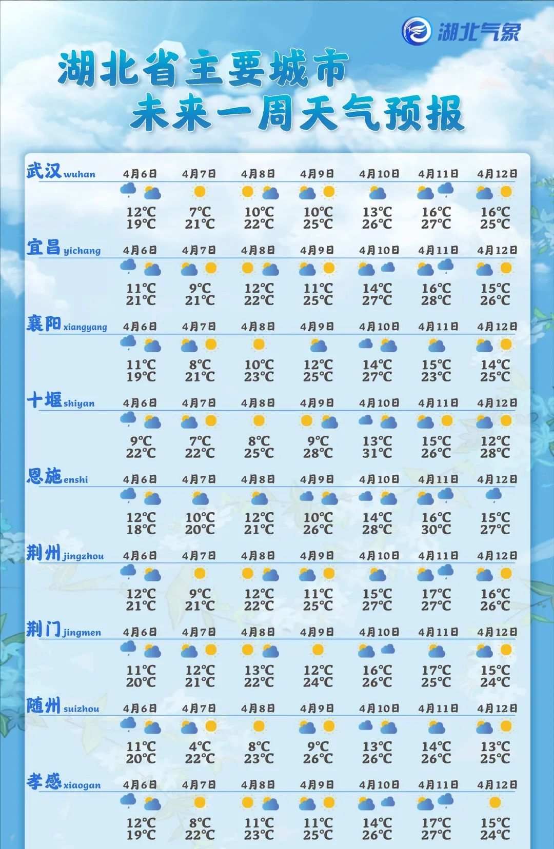 湖北省未来一周天气预报